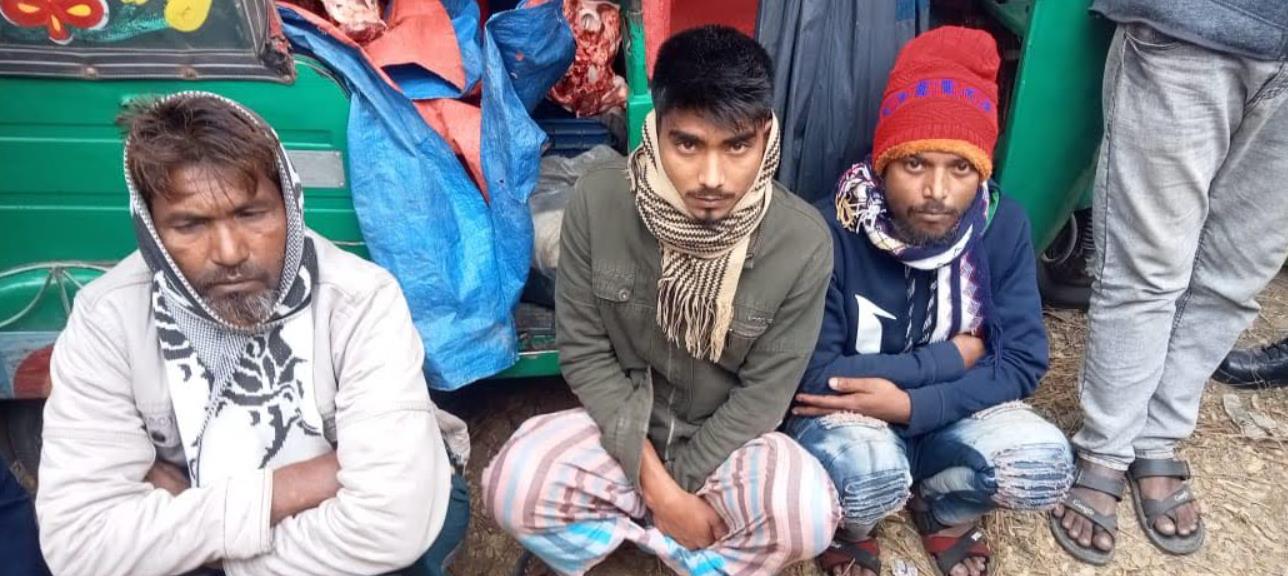 প্রাপ্ত তথ্য জানা গেছে নন্দীগ্রাম পৌর শহরের উমরপুর এলাকার মো: হাশেম আলীর প্রায় ১লক্ষ টাকা মূল্যের একটি গাভী বাচ্চা প্রসব করতে গিয়ে গাভীর পেটেই বাচ্চটি মারা যায়। এতে করে অসুস্থ হয়ে পড়ে লক্ষ টাকা মূল্যের গাভীটি। লোকশান ঠেকাতে গাভীর মাংস বিক্রয়ের উদ্দেশ্যে পার্শ্ববর্তী সিংড়া উপজেলার সুকাশ ইউনিয়নের বোয়ালিয়া গ্রামের শামীম হোসেনের মাধ্যমে শেরপুর পৌরসভার মো: অহিদ শেখের ছেলে মো: গনির নির্দেশে একই এলাকার আজহারের ছেলে মিসকিন হোসেন (৪৭), সোনা শেখের ছেলে সোহেল রানা (২৫) ও কুরবান আলীর ছেলে আশরাফ (২৭) অসুস্থ গাভীটি জবাই করে সিএনজি যোগে শেরপুর নিয়ে যাওয়ার পথে স্থানীয় জনতা উমপুর বাসস্ট্যান্ডে তাদের হাতেনাতে আটক করে। পরে স্থানীয় জনতা পুলিশে খবর দিলে পুলিশ গিয়ে তাদের হেফাজতে নেয়।