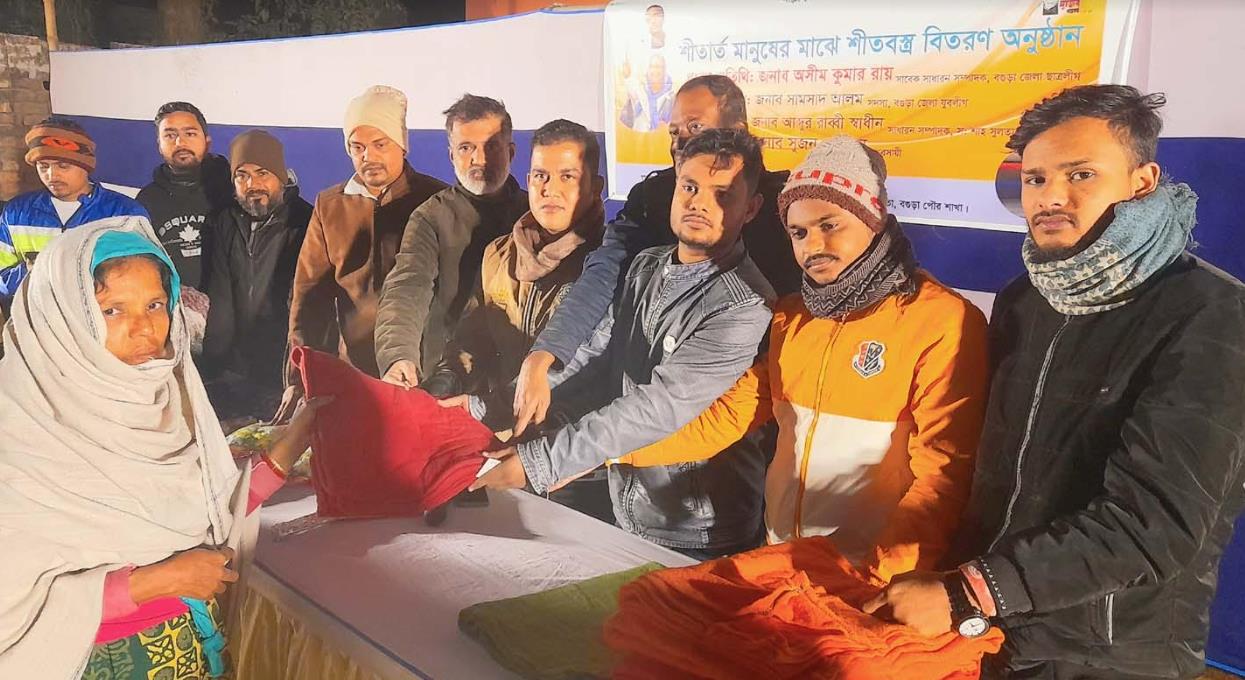 বগুড়ায় শীতার্ত মানুষের মাঝে শীতবস্ত্র বিতরণ
