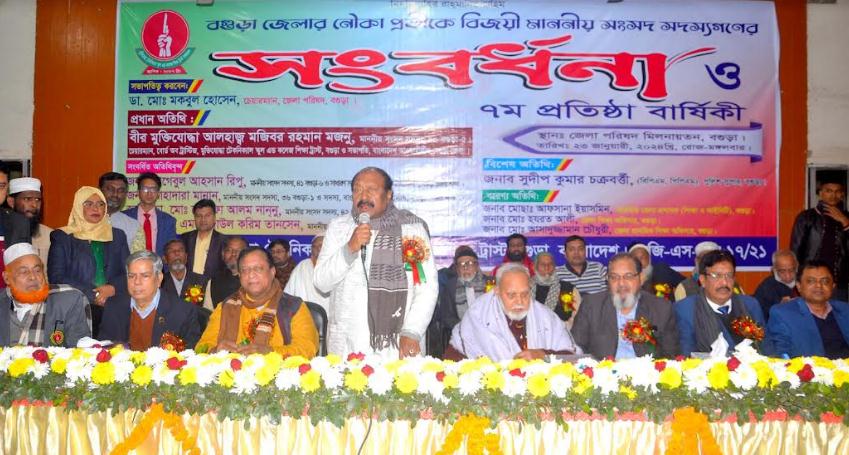 জেলা পরিষদের চেয়ারম্যান ডা. মকবুল হোসেনের সভাপতিত্বে এতে প্রধান অতির্থির বক্তব্য রাখেন সংবর্ধিত বগুড়া-৫ (শেরপুর-ধুনট) আসনের সংসদ সদস্য, মুক্তিযোদ্ধা টেকনিক্যাল স্কুল এন্ড কলেজ শিক্ষা ট্রাস্টের চেয়ারম্যান ও জেলা আওয়ামী লীগের সভাপতি বীর মুক্তিযোদ্ধা আলহাজ্ব মজিবর রহমান মজনু। প্রধান অতিথির বক্তব্যে তিনি বলেন, দ্বাদশ জাতীয় সংসদ নির্বাচনে বগুড়ার ৫টি আসনে আওয়ামী লীগের বিজয় হয়েছে। এটি বগুড়াবাসীর গর্ব। মাননীয় প্রধানমন্ত্রী শেখ হাসিনা বগুড়ায় যোগ্য প্রার্থীদের মনোনয় দিয়েছিলেন। প্রধানমন্ত্রীর সম্মান বগুড়ার মানুষ রক্ষা করেছেন।