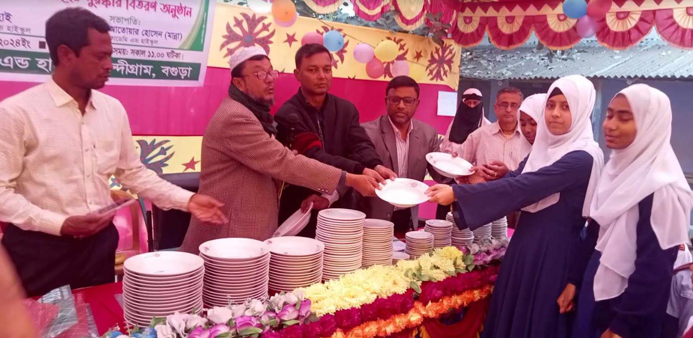 বৃহস্পতিবার সকাল সাড়ে ১০টায় অত্র প্রতিষ্ঠানের ম্যানিজিং কমিটির সভাপতি মো: এসএম আতোয়ার হোসেন মান্নার সভাপতিত্বে বিদায়ী ছাত্র/ছাত্রীদের উদ্দেশ্যে দিক নির্দেশনামূলক বক্তব্য রাখেন বিদ্যালয়ের প্রধান শিক্ষক আব্দুল হাই ঠান্ডু। এসময় আরো বক্তব্য রখেন নন্দীগ্রাম উপজেলা প্রেসক্লাবের সাবেক প্রতিষ্ঠাতা সিনিয়র সাংবাদিক মো: ফজলুর রহমান, সহকারী শিক্ষক মো: নুরুল ইসলাম, প্রতাপ চন্দ্র, বাদশাহ আলম, রোকন, জিল্লুর রহমান, হানজালা, প্রমুখ। পরে অত্র বিদ্যালয়ের এসএসসি বিদায়ী ও কৃতি ২১জন ছাত্র/ছাত্রীদের মাঝে পুরস্কার বিতরণ করা হয়েছে। বিদায়ী শিক্ষার্থীদের উদ্দেশ্যে দোয়া পরিচালনা করেন হাফেজ মাওলানা মো: হেলাল উদ্দিন।