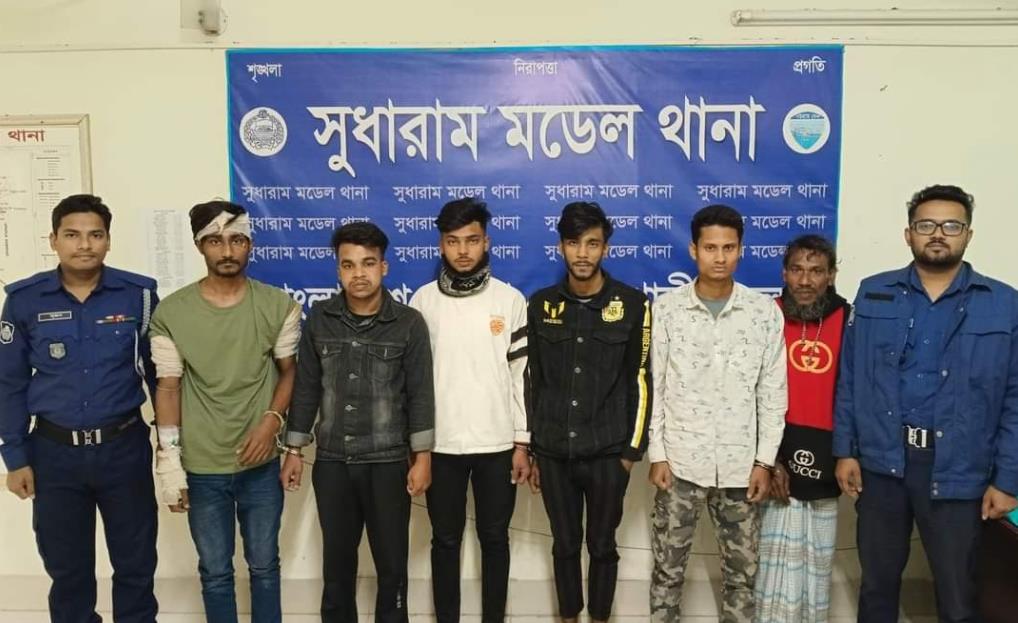 আটককৃতরা হলো, রিয়াজ উদ্দিন (২৩), আরিফ উদ্দিন (২৫), আরমান রাহাত (২১), পারভেজ রাজু (২০), আবু নাছের (২৫), মো. ফারুক (৪২), রাকিব উদ্দিন (২৫)। আটককৃত সবাই সদর উপজেলার নোয়ান্নই ইউনিয়নের বাসিন্দা। ঘটনায় ৭ জনকে আটক করেছে পুলিশ।