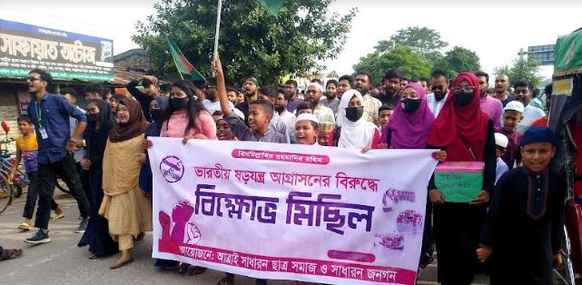 শুক্রবার বিকেলে সাধারণ ছাত্র ও জনগণের ব্যানারে এ বিক্ষোভ মিছিল অনুষ্ঠিত হয়। মোল্লা আজাদ মেমোরিয়াল সরকারি কলেজ মাঠ থেকে মিছিলটি উপজেলার বিভিন্ন রাস্তা প্রদক্ষিণ করে। এ সময় তারা ভারত বিরোধী বিভিন্ন শ্লোগান দেয়। পরে স্টেশন চত্বরে এক পথ সভায় বক্তব্য রাখেন বৈষম্য বিরোধী ছাত্র আন্দোলনের নেতা দেওয়ান মেহেদী, রাকিব শুভ, নাহিদ তৌকি, তারেক সম্রাট, আরিফ আহমেদ, আব্দুর রউফ রিফাত প্রমুখ।