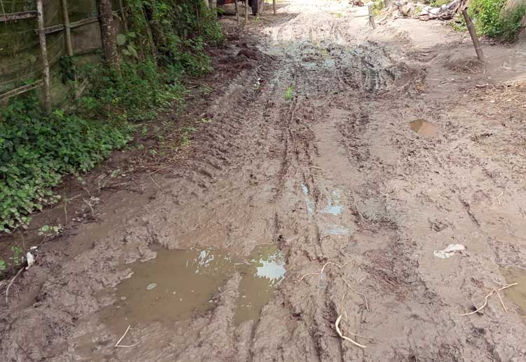 জলকৈ-সরিয়া-প্রেমতলী সড়ক রাণীনগরে বেহাল সড়ক দূর্ভােগ গ্রামবাসীর