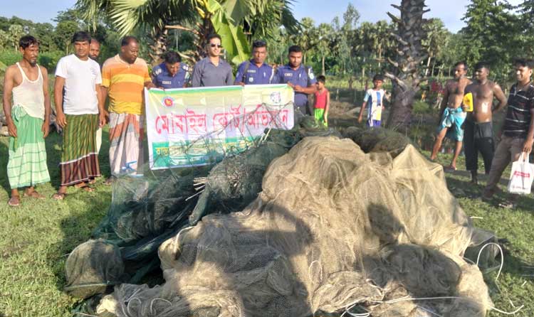 শাজাহানপুরে অভিযানে নিষিদ্ধ জাল আগুনে পুড়িয়ে ধ্বংস