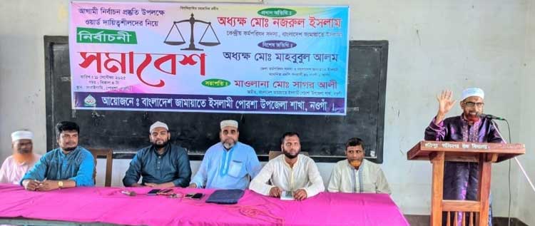 নওগাঁর পোরশায় ত্রয়োদশ জাতীয় সংসদ নির্বাচন উপলক্ষে ওয়ার্ড দায়িত্বশীলদের নিয়ে নির্বাচনী সমাবেশ করেছে উপজেলা জামায়াত।