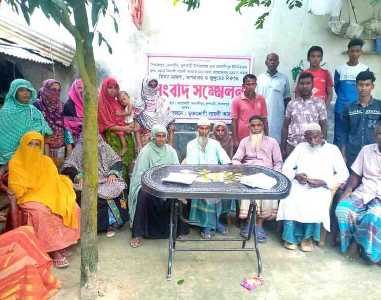 দিনাজপুরের ফুলবাড়ী উপজেলার রাঙামাটি গ্রামে যাতায়াতের রাস্তা বন্ধ করে মিথ্যা মামলা দিয়ে হয়রানি করছে শামসুল আলমের পরিবারকে। শামসুল আলমের লিখিত অভিযোগে জানা যায়, গত ২১/০৮/২০২৫ইং সালে দলিল নং ৩১৩৪১৬ মূলে উপজেলার উত্তর রঘুনাথপুর গ্রামের মৃত মোমিন উদ্দিনের পূত্র মোঃ মোজাফ্ফর রহমান (৫১) এর নিকট থেকে মোছাঃ লায়লা বেগম ৬ শতক ও অন্য দলিল মূলে ১ শতক জমি ক্রয় করেন। উল্লেখ্য থাকে যে, ঐ রাস্তা দিয়ে তারা যাতায়াত করতে পারবে, এতে তার কোন বাধা থাকবে না মর্মে দলিলে অঙ্গীকার করেন। মোছাঃ লায়লা বেগম ঐ জমিতে বাড়ীঘর নির্মাণ করে। প্রতিপক্ষ মোঃ মোজাফ্ফর রহমান তার যাতায়াতের রাস্তা বন্ধ করে দেন। গত ১০.১০.২০২৪ইং তারিখে লায়লা বেগমের স্বামী শামসুল আলম ফুলবাড়ী থানায় তাকে মারপীট করার দায়ে লিখিত অভিযোগ করেন। এতে দূপক্ষের মধ্যে মিমাংসা হয়। ২৪/০৩/২০২৫ইং তারিখে মোঃ মোজাফ্ফর রহমান গংরা মারপীট করে। প্রতিপক্ষ মোঃ মোজাফ্ফর মন্ডল দিনাজপুর বিজ্ঞ সিনিয়র জুডিসিয়াল ম্যাজিষ্ট্রেট আদালতে বাদী হয়ে শামসুল হক ও মোছাঃ লাবলী বেগমসহ ১১জনকে আসামী করে মিথ্যা মামলা দায়ের করেন। যাহার মামলা নং- সিআর১৩৭/২৫, তারিখ ২০.০৪.২০২৫। পিবিআই পুলিশ কর্তৃক তদন্তে মিথ্যা বলে প্রমাণিত হয়। একই ব্যক্তি দিনাজপুর বিজ্ঞ নির্বাহী ম্যাজিষ্ট্রেট আদালত (খ) অঞ্চল, ফুলবাড়ী, দিনাজপুর আদালতে মোঃ হাবিবুর রহমান(৫০) ও মোঃ আব্দুল গোফ্ফার (৬০) সহ ১৭ জনকে আসামী করে মামলা করেন মোজাফ্ফর মন্ডল গংরা। এর প্রতিবাদ করে গত ১৬ই অক্টোবর ২০২৫ইং তারিখে তার নিজ বাড়ীতে এক সংবাদ সম্মেলন করেন ভুক্তভোগী মোছাঃ লায়লা বেগম ও তার পরিবারের লোকজন। এই ঘটনায় মোছাঃ লায়লা বেগম প্রশাসনের কাছে ন্যায় বিচারের দাবি জানিয়ে বলেন, আমার পরিবারকে অর্থনৈতিক ভাবে হয়রানি করছে মোজাফ্ফর গংরা। এতে মোছাঃ লায়লা বেগম চরম দুঃশ্চিন্তায় ভুগছেন।