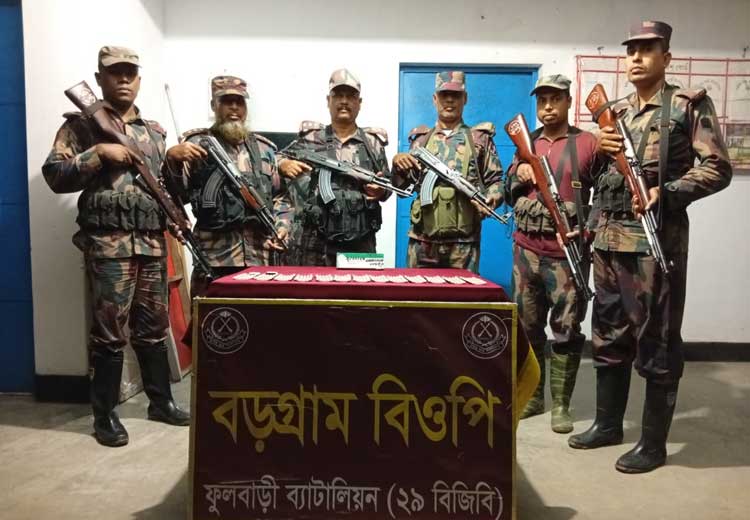 ফুলবাড়ী ২৯ বিজিবি বড়গ্রাম সীমান্ত এলাকায় অভিযান চালিয়ে বিপুল পরিমান মাদক আটক