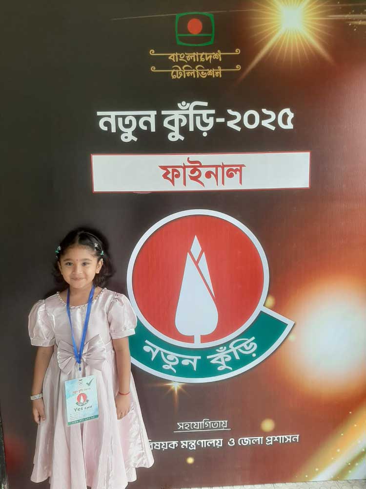 এর আগে গত ২৮ সেপ্টেম্বর রংপুর শিল্পকলা একাডেমিতে অনুষ্ঠিত নতুন কুঁড়ি-২০২৫ এর আবৃত্তি প্রতিযোগিতার “ক” গ্রুপে রংপুর আঞ্চলিক বাছাই পর্বে শিশু শিক্ষার্থী চিত্রাঙ্গদা রায় উত্তীর্ণ হয় সে। পরবর্তীতে গত ৬ অক্টোবর রংপুর শিল্পকলা একাডেমিতে অনুষ্ঠিত রংপুর বিভাগীয় বাছাই পর্বে দ্বিতীয় স্থান লাভ করে চিত্রাঙ্গদা রায়। এরপর গত ১৯ অক্টোবর ঢাকায় বিটিভি ভবনে চূড়ান্ত পর্বে চতুর্থ এবং ২৬ অক্টোবর সেরা দশ পর্বে অংশ নিয়ে তৃতীয় হওয়ার গৌরব অর্জন করে চিত্রাঙ্গদা রায়। সর্বশেষে গত ১ নভেস্বর ঢাকা বিটিভি ভবনে ফাইনাল রাউন্ডে চতুর্থ স্থান লাভ করেছে সে।