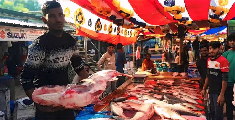 নন্দীগ্রামে নবান্ন উপলক্ষে মাছের মেলা: সারি সারি দোকানে মানুষের ভিড়