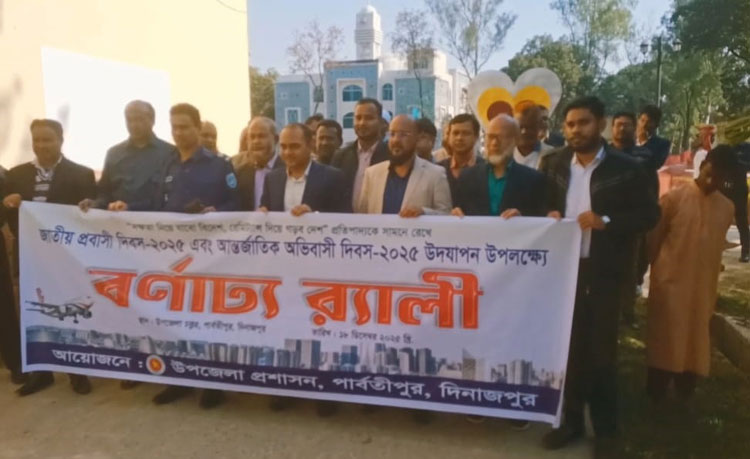 দক্ষতা নিয়ে যাবো বিদেশ, রেমিট্যান্স দিয়ে গড়ব দেশ-এই প্রতিপাদ্যকে সামনে রেখে জাতীয় প্রবাসী দিবস ২০২৫ ও আন্তর্জাতিক অভিবাসী দিবস ২০২৫ উদযাপন উপলক্ষে দিনাজপুরের পার্বতীপুরে বর্ণাঢ্য র্যালি ও আলোচনা সভা অনুষ্ঠিত হয়েছে। বৃহস্পতিবার (১৮ ডিসেম্বর) বেলা ১১টায় পার্বতীপুর উপজেলা প্রশাসনের উদ্যোগে উপজেলা চত্বর থেকে একটি বর্ণাঢ্য র্যালি বের করা হয়। র্যালিটি উপজেলা চত্বর প্রদক্ষিণ শেষে উপজেলা পরিষদ সম্মেলন কক্ষে এসে শেষ হয়।