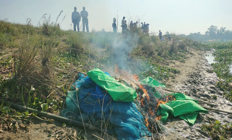 আত্রাইয়ে ভ্রাম্যমাণ আদালতের অভিযানে অবৈধ 'কচ জাল' জব্দ ও পুড়িয়ে ধ্বংস