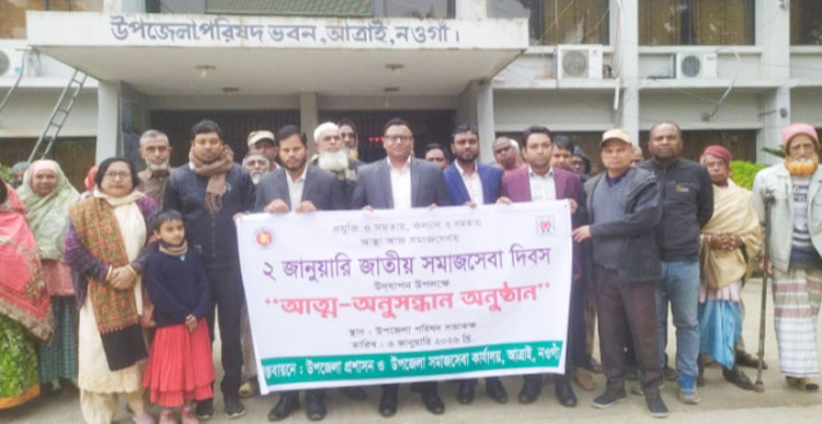 "প্রযুক্তি ও সমতায়, কল্যাণ সমতায় আস্থা" এই প্রতিপাদ্যকে সামনে রেখে নওগাঁর আত্রাইয়ে জাতীয় সমাজসেবা দিবস-২০২৬ উদযাপন করা হয়েছে। উপজেলা প্রশাসন ও উপজেলা সমাজসেবা কার্যালয়ের যৌথ আয়োজনে শনিবার (৩ জানুয়ারি) বেলা ১১টায় উপজেলা পরিষদ হলরুমে এক আলোচনা সভা ও আত্ম-অনুসন্ধানমূলক অনুষ্ঠানের আয়োজন করা হয়।