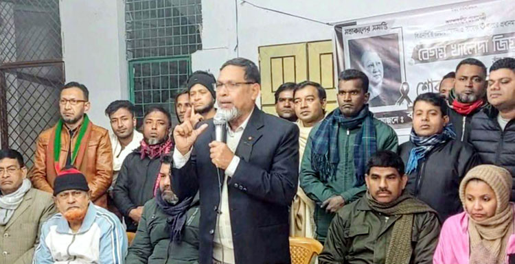 বিএনপির চেয়ারপরর্সন তিন বারের সাবেক প্রধানমন্ত্রী বেগম খালেদা জিয়ার রাজনৈতিক জীবনের উপর আলোচনা সভা ও তার আত্মার শান্তি কামনায় প্রার্থনা করা হয়েছে। গত শুক্রবার রাতে বগুড়ার আদমদীঘি উপজেলার সান্তাহার বেণীমাধব আশ্রমে পৌর পূজা উদযাপন ফ্রন্টের উদ্যোগে এই প্রার্থনার আয়োজন করা হয়। সান্তাহার পৌর পূজা উদযাপন ফ্রন্টের আহবায়ক রাকেশ কুমার সাহার সভাপতিত্বে অনুষ্ঠিত আলোচনা সভায় প্রধান অতিথির বক্তব্য রাখেন বগুড়া-৩ (আদমদীঘি-দুপচাঁচিয়া) আসনের বিএনপির মনোনীত এমপি পদপ্রার্থী আব্দুল মহিত তালুকদার। প্রধান বক্তা হিসেবে বক্তব্য রাখেন আদমদীঘি উপজেলা পূজা উদযাপন ফ্রন্টের আহবায়ক ও সান্তাহার পৌর যুবদলের যুগ্ম আহবায়ক সৌরভ কুমার কর্মকার। বিশেষ অতিথির বক্তব্য রাখেন সান্তাহার পৌর বিএনপির সাংগঠনিক সম্পাদক ইঞ্জিনিয়ার দিলদার আলম জুয়েল, পৌর বিএনপির সহ-সভাপতি ও সাবেক ইউপি চেয়ারম্যান মোজাহারুল ইসলাম পিন্টু, জেলা মহিলা দলের সহ-সম্পাদক এইচ এম মুক্তা, জেলা যুবদলের সদস্য মিজানুর রহমান তালুকদার জিকো। অন্যান্যদের মধ্যে বক্তব্য রাখেন পূজা উদযাপন ফ্রন্টের সদস্য সচিব দেবাশীষ গুপ্ত, পূজা উদযাপন ফ্রন্টের সদস্য হারান, আশুতোষ, সহনলাল সাহা, ডাক্তার বিপুল সরকার, রতন মুখার্জি, সুশীল ঘোষ, দিনেষ, সুমন, রনিসহ বিএনপির বিভিন্ন পর্যায়ের নেতৃবৃন্দ। আলোচনা শেষে বেগম খালেদা জিয়ার আত্মার শান্তি কামনা করে বিশেষ প্রার্থনা করা হয়।