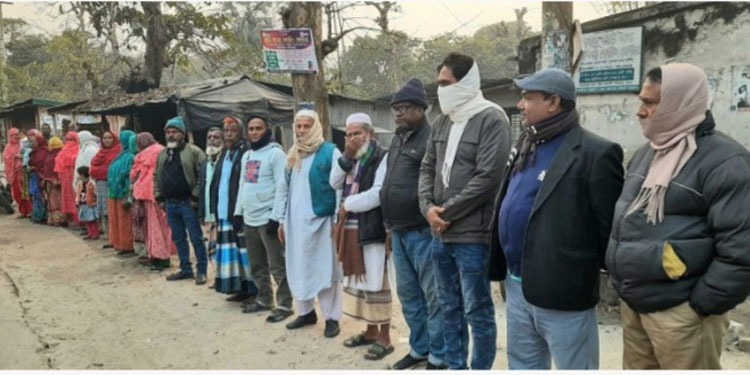 সান্তাহার পৌর শহরে বিশুদ্ধ পানি সরবরাহের দাবিতে পৌরবাসীর মানববন্ধন