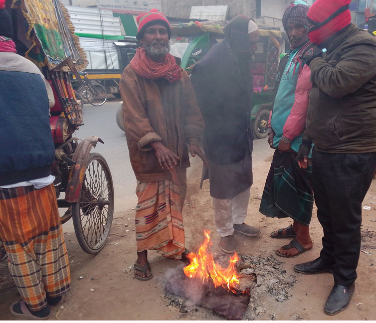 উত্তরের জেলা দিনাজপুরের বিরামপুর উপজেলায় বেড়েছে শীতের দাপট। কয়েক দিনের হিমেল বাতাসের ঝাপটায় কাহিল হয়ে পড়েছে প্রাণিকুল। অনেকে আগুন জ্বালিয়ে শীত নিবারণের চেষ্টা করছেন।