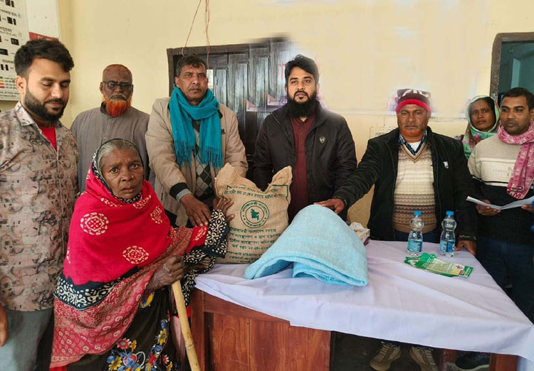 পোরশায় দুস্থ প্রতিবন্ধীদের মাঝে শুকনা খাবার ও শীতবস্ত্র বিতরণ