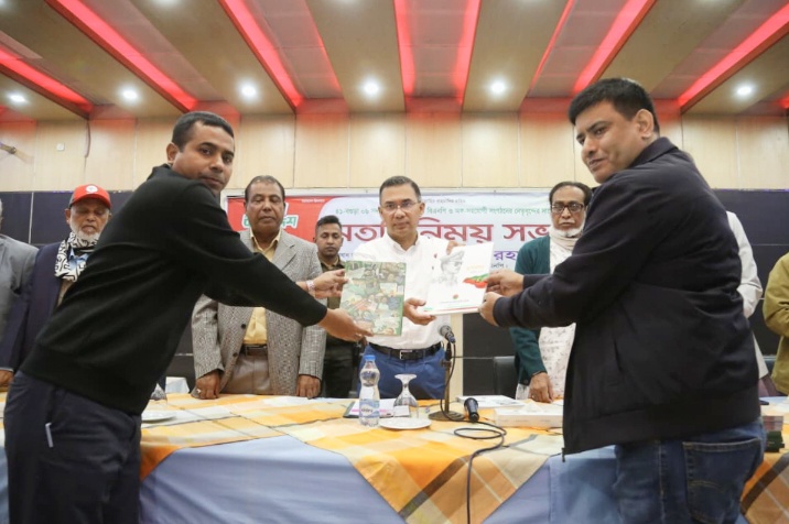 শনিবার সকালে শহরের হোটেল নাজ গার্ডেনে অনুষ্ঠিত বিএনপি ও এর অঙ্গ সংগঠনের বিভিন্ন পর্যায়ের নেতৃবৃন্দের সাথে মতবিনিময় সভা শেষে জেলা যুবদলের পক্ষে সংগঠনের সভাপতি ও সাধারণ সম্পাদক আনুষ্ঠানিকভাবে বিএনপি চেয়ারম্যানকে তাদের স্মরণিকা হস্তান্তর করেন।