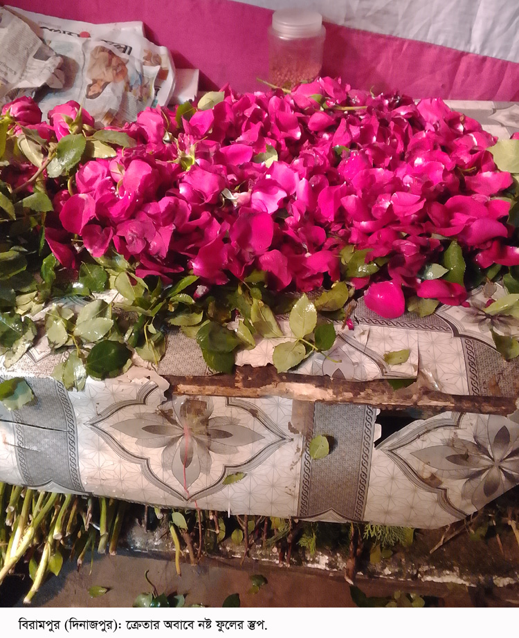 বিরামপুরে ক্রেতার অভাবে নষ্ট হচ্ছে দোকানের ফুল