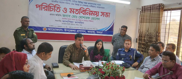 কাহালু উপজেলা প্রশাসনের আয়োজনে পরিচিতি ও মতবিনিময় সভায় সভাপতিত্ব করেন উপজেলা নির্বাহি অফিসার কাশপিয়া তাসরিন।