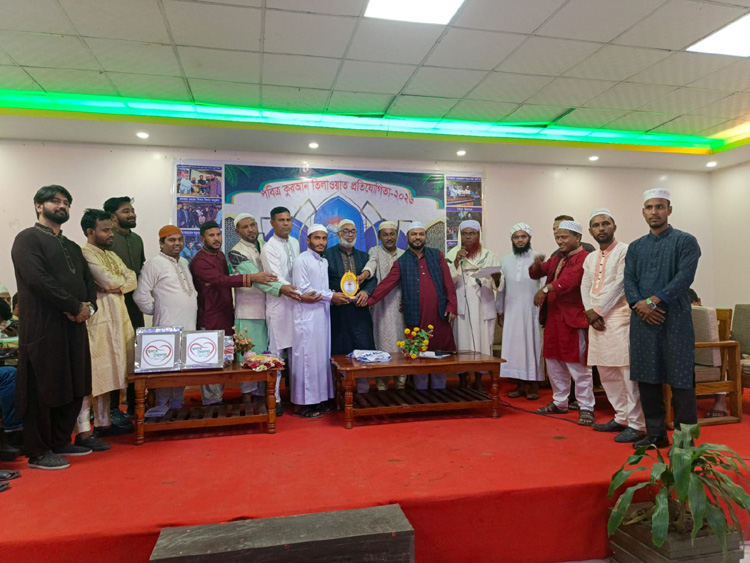 কুরআন তিলাওয়াত প্রতিযোগিতা শেষে বিজয়ীদের মধ্যে পুরস্কার বিতরণ করা হয়েছে।