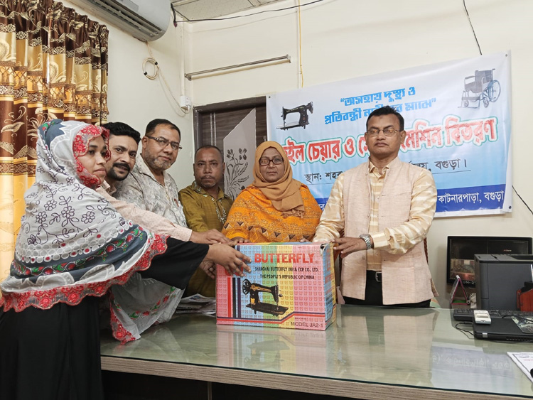 বগুড়ায় পেসডের উদ্যোগে দুস্থ ও প্রতিবন্ধী নারীদের মাঝে হুইলচেয়ার ও সেলাই মেশিন বিতরণ