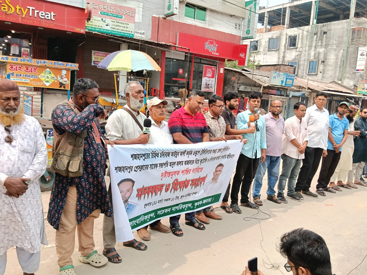 সাংবাদিকের বিরুদ্ধে কটূক্তির অভিযোগে শাজাহানপুরে মানববন্ধন ও বিক্ষোভ