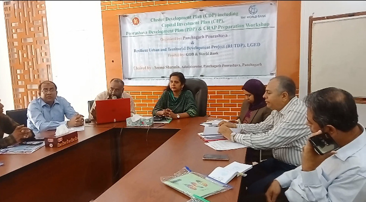 বিশ্ব ব্যাংক এর সহায়তায় এবং LGED কর্তৃক বাস্তবায়নাধীন রিজিলিয়েন্ট আরবান এন্ড টেরিটরিয়াল ডেভেলপমেন্ট প্রজেক্ট (RUTDP), এর অওতায় পঞ্চগড় পৌরসভায় ১২/০৩/২০২৬ তারিখে ক্লাস্টার উন্নয়ন পরিকল্পনা (CDP), ক্যাপিটাল ইনভেস্টমেন্ট প্ল্যান (CIP), পৌরসভা ডেভেলপমেন্ট প্লান (PDP) এবং ক্লাইমেট রেজিলিয়েন্ট অ্যাকশন প্ল্যান (CRAP) শীর্ষক কর্মশালা অনুষ্ঠিত হয়। কর্মশালায় সভাপতিত্ব করেন সীমা শারমিন প্রশাসক, পঞ্চগড় পৌরসভা ও উপ পরিচালক, স্থানীয় সরকার পঞ্চগড়।