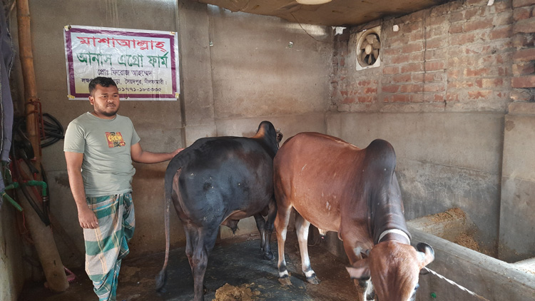 সৈয়দপুরে গরু ও হাঁস-মুরগীর খামার করে স্বাবলম্বী হয়েছেন যুবক ফিরোজ আহমেদ