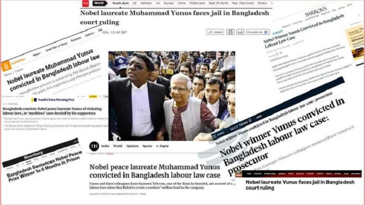 আন্তর্জাতিক সংবাদ মাধ্যমে ড. ইউনূসের কারাদন্ডের খবর