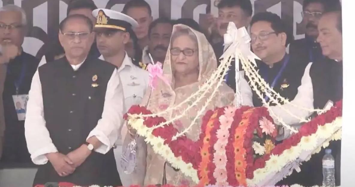 ফরিদপুরে নির্বাচনি জনসভার মঞ্চে প্রধানমন্ত্রী