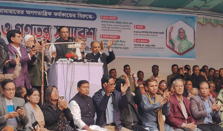শনিবার (২৭ জানুয়ারি) রাজধানীর বঙ্গবন্ধু অ্যাভিনিউতে আওয়ামী লীগের কেন্দ্রীয় কার্যালয়ের সামনে ‘বিএনপি-জামায়াতের অগণতান্ত্রিক কর্মকাণ্ডের বিরুদ্ধে শান্তি ও গণতন্ত্র সমাবেশ’-এ এসব কথা বলেন তিনি। ঢাকা মহানগর দক্ষিণ আওয়ামী লীগ এ সমাবেশের আয়োজন করে।