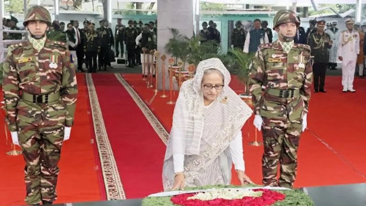রোববার সকাল ৭টায় ধানমন্ডি ৩২ নম্বরে ঐতিহাসিক বঙ্গবন্ধু ভবন প্রাঙ্গণে রক্ষিত জাতির পিতার প্রতিকৃতিতে পুষ্পস্তবক অর্পণের মাধ্যমে এ শ্রদ্ধা জানান তিনি। এ সময় কিছুক্ষণ নীরবে দাঁড়িয়ে থাকেন সরকারপ্রধান।