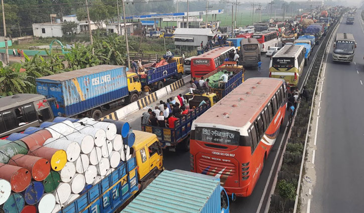 ২৫ কিলোমিটার যানজটে ভোগান্তিতে যাত্রীরা