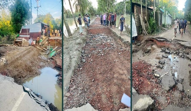 ফেনীতে বন্যার ক্ষতচিহ্ন ৩৪২ সড়কে