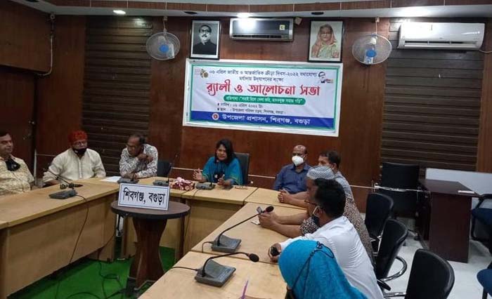 বুধবার উপজেলা পরিষদ সভাকক্ষে উপজেলা প্রশাসনের আয়োজনে উপজেলা নির্বাহী অফিসার উম্মে কুলসুম সম্পা’র সভাপতিত্বে আলোচনা সভায় বক্তব্য রাখেন ক্রীড়া সংস্থার সাধারণ সম্পাদক আজিজুল হক, স্বাস্থ্য কর্মকর্তা ডা. তারক নাথ কুন্ডু, প্রকল্প বাস্তবায় কর্মকর্তা জিন্দার আলী, প্রাণী সম্পদ কর্মকর্তা জাফরিন রহমান, যুব উন্নয়ন কর্মকর্তা গোলাম রব্বানী, নির্বাচন কর্মকর্তা আনিসুর রহমান, সমবায় কর্মকর্তা রাজিয়া সুলতানা প্রমুখ।