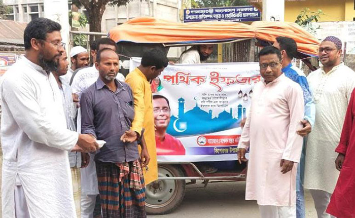 শনিবার দুপুর থেকে নিজের হাতেই শুরু করেন ইফতার সামগ্রী রান্না। রান্না শেষে ওই খাবার দিয়ে সাজানো হয় ইফতারের প্যাকেট। আসরের নামাজের পর এ ইফতার প্যাকেট একটি অটোতে সারি সারি করে সাজিয়ে নেন। অটোর সাইটে সাটিয়ে দেন একটি ডিজিটাল ব্যানার। যাতে লেখা “পথিক ইফতার”। অনেকেই ব্যানারের ভাষা বুঝতে না পেরে তাদের জিজ্ঞাসাও করেন “পথিক ইফতার” টি আবার কি। তখনই তাদের হাতে ধরিয়ে দেন ইফতারের একটি প্যাকেট। পথচারীরা আকস্মিকভাবে ইফতারের প্যাকেট পেয়ে বুঝে নেন “পথিক ইফতার” ভাষাটি। অন্যদিকে ব্যানারটির গায়ে লেখা ছিল- যদি মানুষ হতে চাও, মানুষের পাশে দাড়াও, ধনি গরিব এক কাতারে ইফতার হবে মিলেমিশে। উপজেলা শহরে ঘুরে ঘুরে ২ শ’ দুস্থ্য পথিককের হাতে তুলে দেন ইফতার। ধনি গরিবের ভেদাভেদ ভুলে পথিকদের সাথে মিলেমিশেই ইফতারও সাড়েন তারা। ধনি গরিব এক কাতারে ইফতার হবে মিলেমিশে তাই করলেন তারা। ব্যানারের গায়ে লেখা ম্যাসেজটিও পথিকদের সাথে ইফতার করে বুঝিয়ে দেন। পথিকদের দেখিয়ে দেন ধনি-গরিব নয়, আমরা সকলে মিলেমিশেই ইফতার করতে চাই। ব্যানারে লেখাগুলি শুধু লেখার মধ্যে সীমাবদ্ধতা না রেখে বাস্তব রুপ দিয়ে তারা পরিচয়ও দিলেন প্রকৃত মানুষের। নজর কাড়লেন সাধারণ মানুষের। দৃষ্টান্ত স্থাপন করলেন মানবিকতার। হয়ে উঠলেন “পথিক ইফতার’র ফেরিওয়ালা”। অনেকেই বলেন এ যেন গরিবের আওয়ামী স্বেচ্ছাসেবক লীগ।