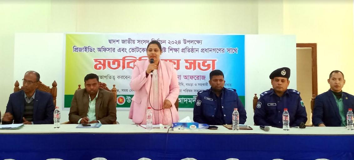 আসন্ন দ্বাদশ জাতীয় সংসদ নির্বাচনের বগুড়ার আদমদীঘিতে প্রিজাইডিং অফিসার এবং ভোটকেন্দ্র সংশ্লিষ্ট শিক্ষা প্রতিষ্ঠানের প্রধানগণের সাথে মতবিনিময় সভা অনুষ্ঠিত হয়েছে।