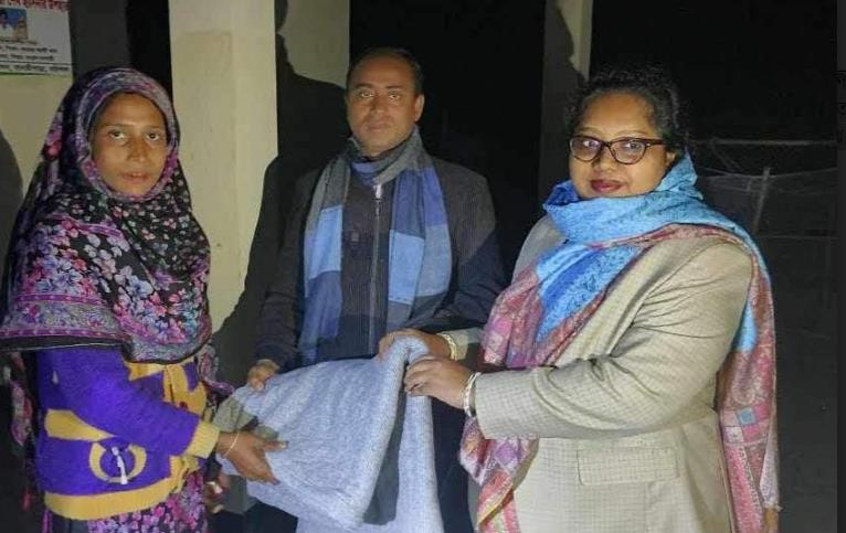 বানারীপাড়ায় শীতার্তদের পাশে কম্বল নিয়ে ইউএনও