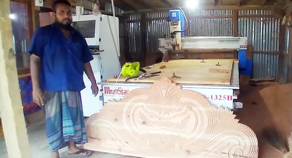 গত দেড় বছর আগে বাড়ীতে এসে আবাদপুকুর বাজারে ছয়টি রুম ভাড়া নিয়ে প্রায় ১০/১২ লক্ষ টাকায় কাঠের বিভিন্ন আসবাবপত্রে নকশি কাটার ডিজিটাল মেশিন ক্রয় করে “মেসার্স শারমিন ফার্ণিচার এন্ড ডোর“ নামে কারখানা খুলেন। তিনি জানান,বর্তমানে একজন ডিজাইনারসহ ৭জন কর্মচারী কারখানায় কাজ করছেন। রাব্বানী জানান, জায়গা পরিধি কম হওয়ায় কারখানা এখনো পুরো-পুরি চালু করতে পারিনি। তার পরেও খরচ বাদ দিয়ে প্রতি মাসে ৩০/৪০ হাজার টাকা আয় হচ্ছে। কারখানা পুরোদমে চালু হলে বর্তমানের চেয়ে কয়েকগুন বেশি আয় হবে বলে আসা করছেন তিনি। তিনি আরো বলেন,বিদেশে যে পরিমানে কামাই-রোজগার করেছেন,দেশে কারখানা খুলে তার বেশি রোজগার হবে। তাই আর বিদেশ যেতে চাননা তিনি।