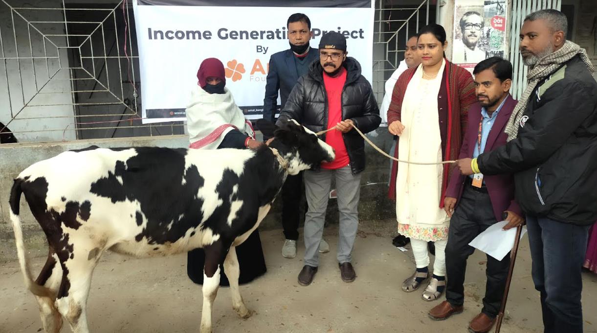 কর্মসংস্থান সৃষ্টি ও অসহায়তা দূর করে সাবলম্বী হওয়ার লক্ষ্যে বগুড়ার আদমদীঘি উপজেলার ছয় দরিদ্র পরিবারের মাঝে ইনকাম জেনারেটিং প্রজেক্ট ‘আমাল ফাউন্ডেশন’র উদ্যোগে প্রতিটি পরিবারকে একটি করে গাভী বিতরণ করা হয়েছে।