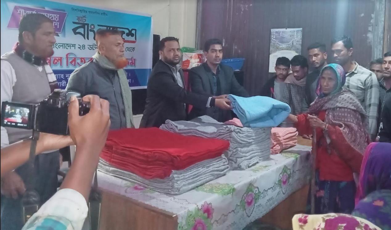 স্মার্ট বাংলাদেশ ২৪ ডটকমের উপদেষ্টা ও বাংলাদেশ ইউপি সচিব সমিতি নোয়াখালীর সাধারণ সম্পাদক মো.সহিদুল ইসলাম ও স্মার্ট বাংলাদেশ ২৪ ডটকমের সম্পাদক মোহাম্মদ সোহেল শীতার্তদের হাতে কম্বল তুলে দেন।