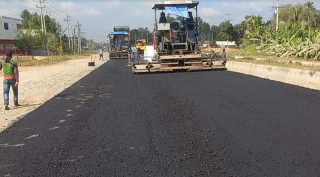 তিনি আরো বলেন, বগুড়ার শিবগঞ্জ উপজেলার মোকামতলা বন্দরে মুরাদপুর এলাকায় কোম্পানি অত্যধানিক প্লান্ট মেশিনে বিটুমিন ও সড়ক নির্মানের জন্য নির্ধারিত পাথর মিক্সি করে হাইড্রনিক ড্রাম ট্রাকে উত্তপ্ত পাথর পরিবহন করে ঠিকাদারী প্রতিষ্ঠান মনিকো লিঃ এই সড়কের নির্মাণ কাজ পরিচালনা করছেন। সরকারি বিধি মোতাবেক বিটুমিন এর ঘনত্ব ও তাপমাত্রা বজায় রেখে অত্যধুনিক হাইড্রলিক সড়ক নির্মান মেশিন দ্বারা চাপ প্রয়োগ করে ৭০ মিলি. মিটার পুরুত্ব আনতে মহা সড়কে অত্যাধুনিক ৪টি রোলার মেশিন দ্বারা সমান্তরাল করা হচ্ছে। প্রথমে দুটি হাইড্রোলিক ভ্রাইবেশন স্টীল রোলার দ্বারা সমান্তরাল করা হয়। পরে রাবার রোলার দ্বারা ফিনিং কাজ শেষ করা হয়।