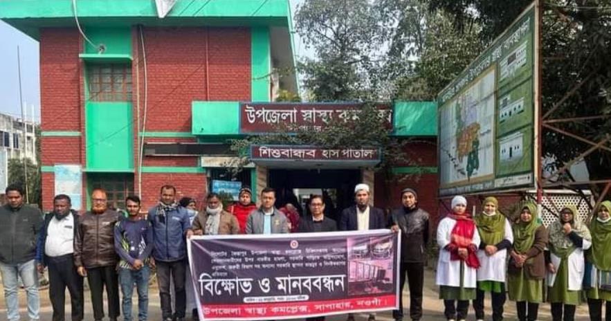 স্বাস্থ্য কমপ্লেক্সে হামলার প্রতিবাদে সাপাহারে মানববন্ধন অনুষ্ঠিত
