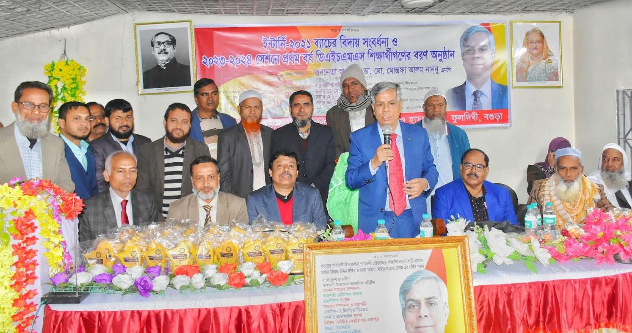 বগুড়া হোমিওপ্যাথিক মেডিকেল কলেজের ইন্টার্নি চিকিৎসকদের বিদায় ও ১ম বর্ষের শিক্ষার্থীদের বরণ অনুষ্ঠানে প্রধান অতিথির বক্তব্য রাখেন বগুড়া -৭ আসনের সংসদ সদস্য অধ্যাপক ডা. মো. মোস্তফা আলম নাননু এমপি বলেন, বঙ্গবন্ধুর স্বপ্নের সোনার বাংলা এবং স্মার্ট বাংলাদেশ বিনির্মানে হোমিওপ্যাথিক চিকিৎসকদের আরও আন্তরিক অংশগ্রহনের মাধ্যমে হোমিওপ্যাথিক চিকিৎসা বিজ্ঞানের মাধ্যমে সাধারণ মানুষের চিকিৎসা সেবা এগিয়ে নেওয়ার আহবান জানান । পাশাপাশি তিনি তাঁর সংসদীয় এলাকার উন্নয়নে সকলের সহযোগিতার আহবান জানান।