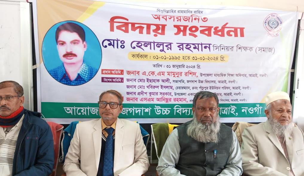 নওগাঁর আত্রাইয়ের জগদাশ উচ্চ বিদ্যালয়ের সমাজ বিষয়ের সিনিয়র শিক্ষক হেলালুর রহমানের অবসরজনিত বিদায় সংবর্ধনা অনুষ্ঠিত হয়েছে।