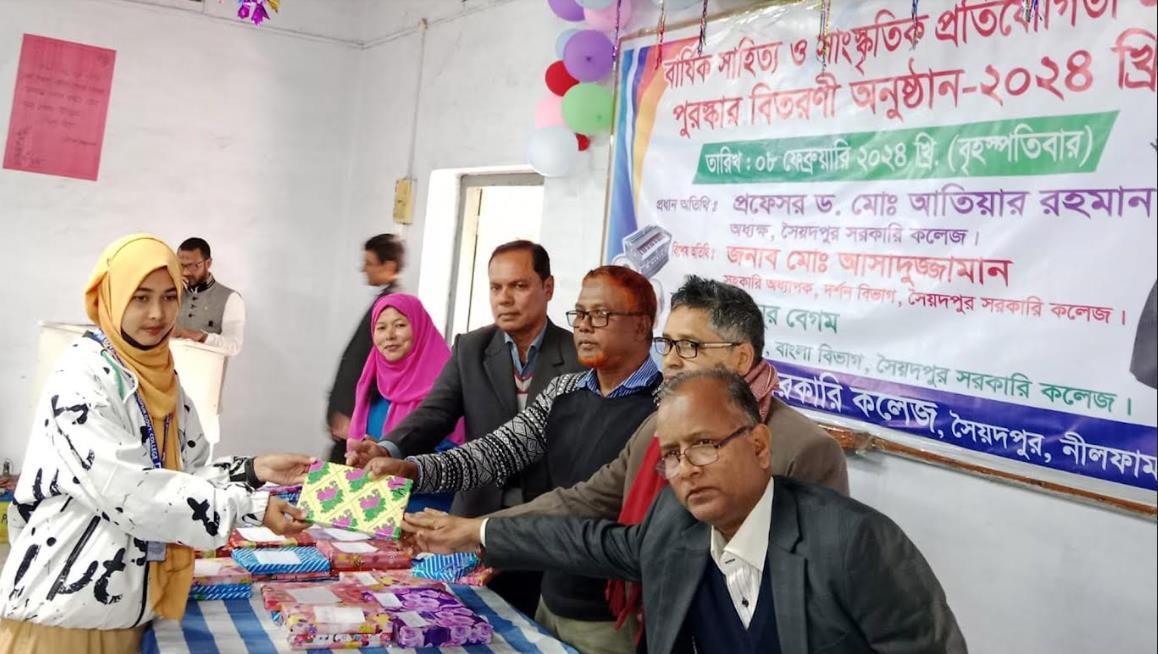 নীলফামারীর সৈয়দপুর সরকারি কলেজের বার্ষিক সাহিত্য ও সাংস্কৃতিক প্রতিযোগিতা ও পুরস্কার বিতরণী অনুষ্ঠান অনুষ্ঠিত হয়েছে। গতকাল বৃহস্পতিবার কলেজ মিলনায়তনে ওই অনুষ্ঠানের আয়োজন করা হয়।