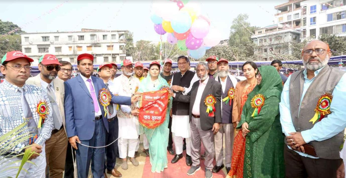 বার্ষিক ক্রীড়া প্রতিযোগিতার উদ্বোধন করেন অনুষ্ঠানের উদ্বোধক নারী উদ্যোক্তা ও বগুড়া-৬ সদর আসনের সংসদ সদস্যের সহধর্মিনী জোবাইদা আহসান জবা।