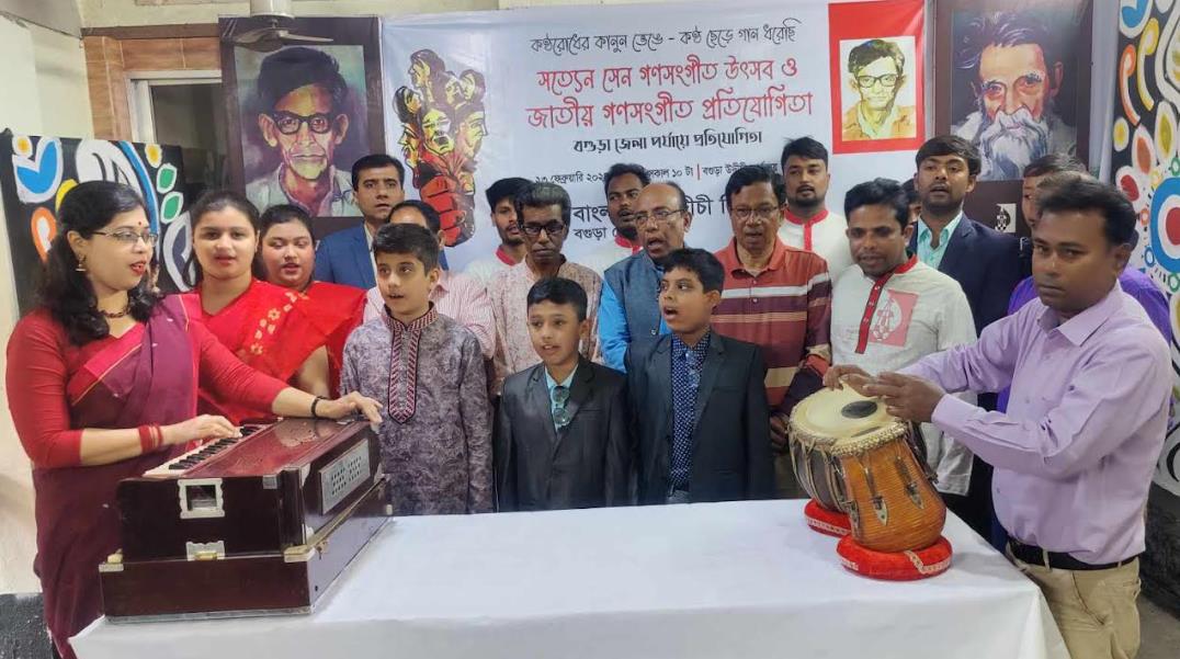 কন্ঠরোধের কানুন ভেঙে - কন্ঠ ছেড়ে গান ধরেছি এই স্লোগান কে সামনে রেখে উদীচী শিল্পীগোষ্ঠী বগুড়া জেলা সংসদের আয়োজনে শুক্রবার (২৩ ফেব্রুয়ারী ) দ্বাদশ সত্যেন সেন গণসঙ্গীত প্রতিযোগিতা অনুষ্ঠিত হয়।