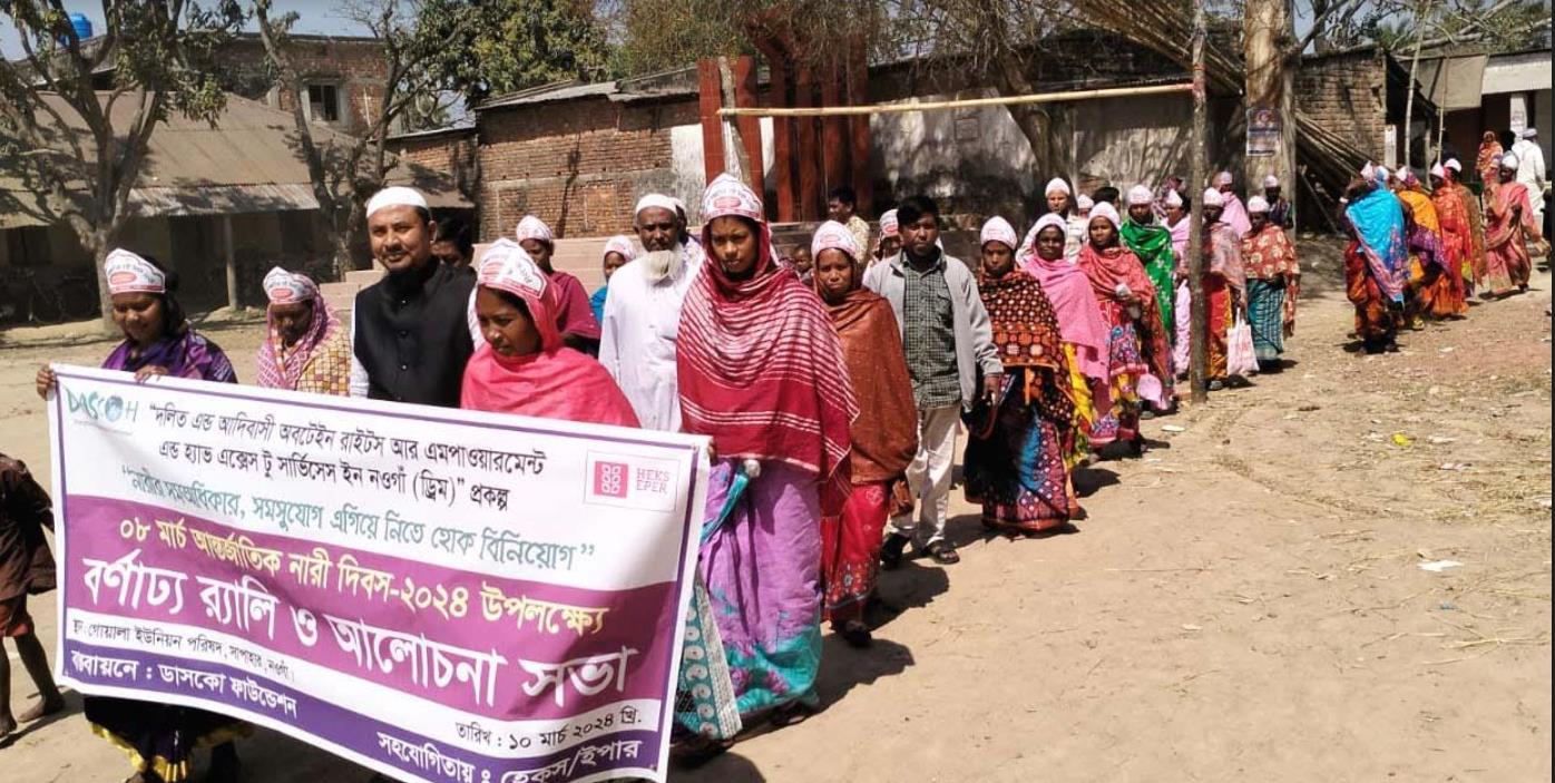 ‘‘নারীর সমঅধিকার, সমসুযোগ, এগিয়ে নিতে হোক বিনিয়োগ’’ এই প্রতিপাদ্যকে সামনে রেখে প্রবেশগম্যতা বৃদ্ধির মাধ্যমে দলিত, ক্ষুদ্র নৃতাত্তিক জনগোষ্ঠীকে মূলধারায় অন্তর্ভূক্ত করতে আন্তর্জাতিক নারী দিবস উপলক্ষে র্যালী ও আলোচনা সভা অনুিষ্ঠত হয়েছে।