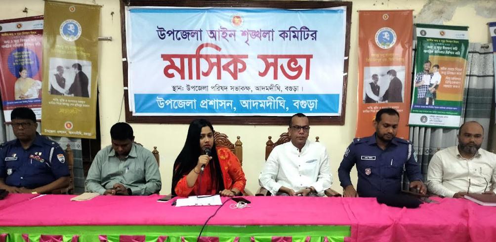 বগুড়ার আদমদীঘি উপজেলা প্রশাসনের আয়োজনে মাসিক আইন শৃংখলা কমিটির সভা অনুষ্ঠিত হয়েছে।